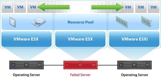 ESX 호스트가 H/W 오류로 인해 작동이 멈출 경우, 그 위에서 작동 중인 VM을 다른 클러스터 내의 ESX 호스트로 이동(Failover) 시키는 기능이다. 이때, 장애가 발생한 호스트 시스템에서 실행 중인 VM들은 '재시작' 되어 다른 ESX 호스트로 이동된다는 한계가 있다.