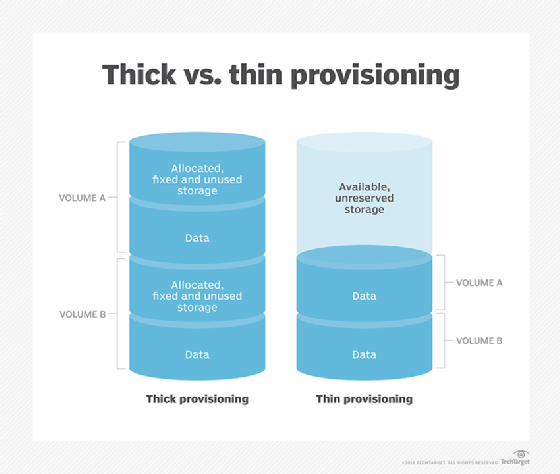 스토리지 저장장치의 크기가 낭비되는 것을 막아주며, 실제 사용 영역만을 할당하여 스토리지 총 소유 비용을 극대화 할 수 있는 기술이다. 사용하는 만큼 가상 디스크 공간이 할당되는 온디맨드 방식의 프로비저닝 방식이라고 볼 수 있다.