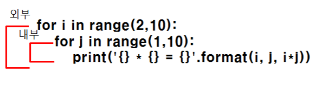 for j in range(1, 10): # 내부 for 루프