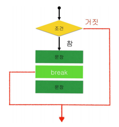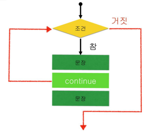 continue # 아래 문장만 건너 뛰고 다시 반복문으로 돌아감